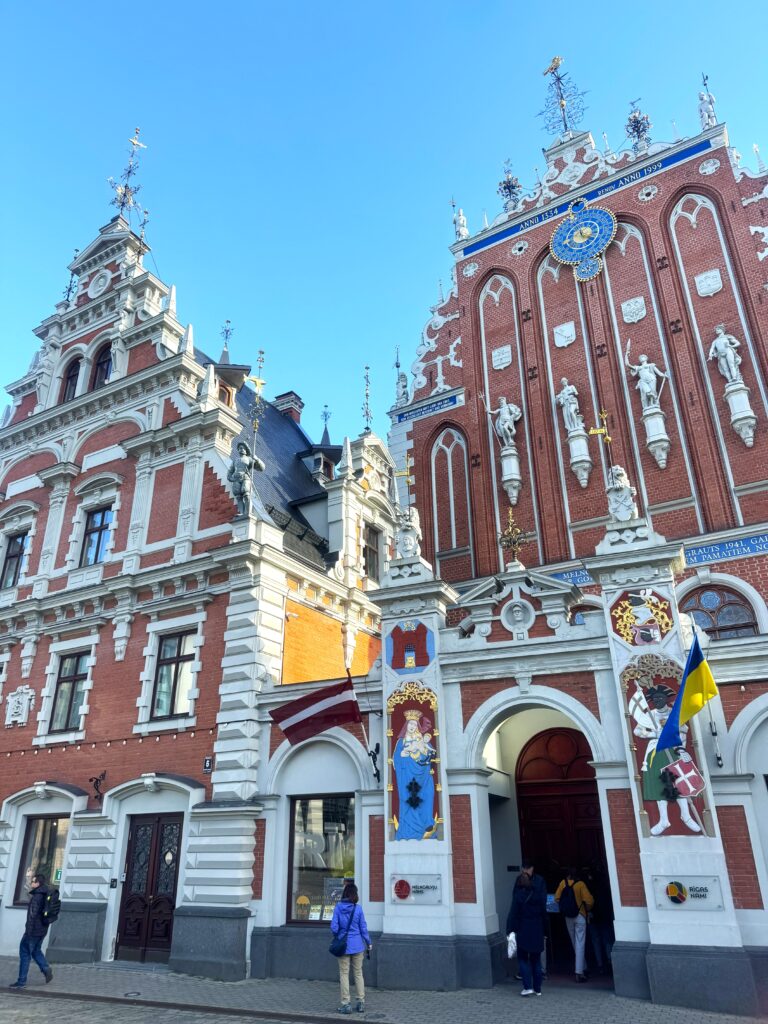 W domu bractwa znajduje się muzeum (nie byłam). Cały plac, włącznie z fasadą Domu Bractwa Czarnogłowych, ratuszem i pozostałymi budynkami uległy zniszczeniu i są zrekonstruowane. Na środku placu stoi Pomnik Rolanda, a po przeciwległej stronie obejrzymy ratusz miejski.