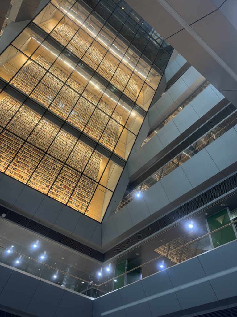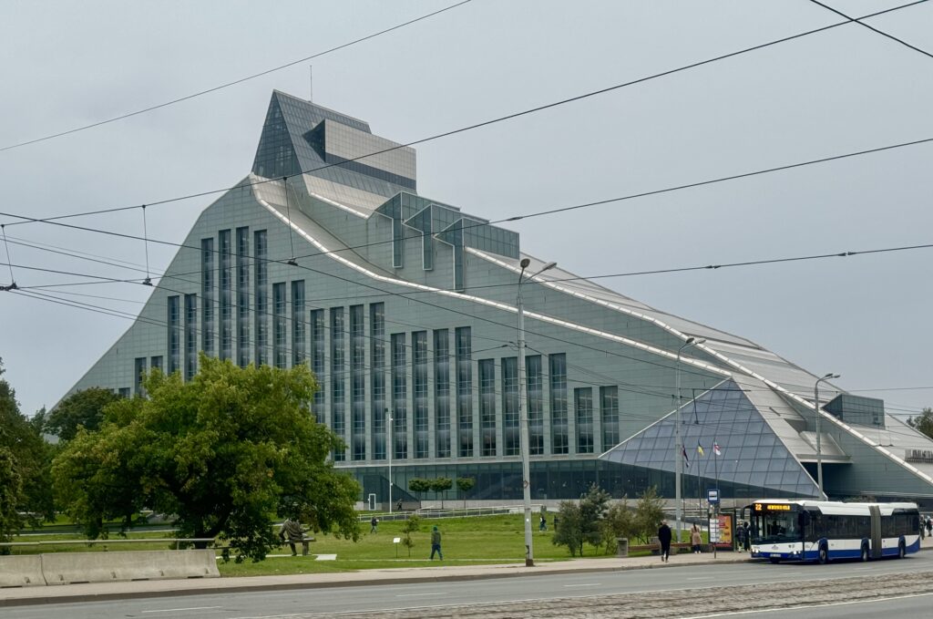 W obecnym okazałym budynku wzniesionym w latach 2008-2014, biblioteka ma siedzibę od 2014 roku. Zbiory woluminów obejmują 4,5 miliona egzemplarzy. Biblioteka leży nad rzeką. Można korzystając z windy, wjechać na 11, najwyższe piętro biblioteki, by z tarasu obejrzeć panoramę. Co prawda moim zdaniem jest to dość uciążliwe przedsięwzięcie, zważywszy na ilość drobnych formalności do wypełnienia, jednak możliwość obejrzenia książnicy w środku wraz z wysokim na wiele pięter korytarzem i przeszklonymi ścianami półek – bezcenne! Warto też zerknąć z góry na Dźwinę, mosty i Starówkę.