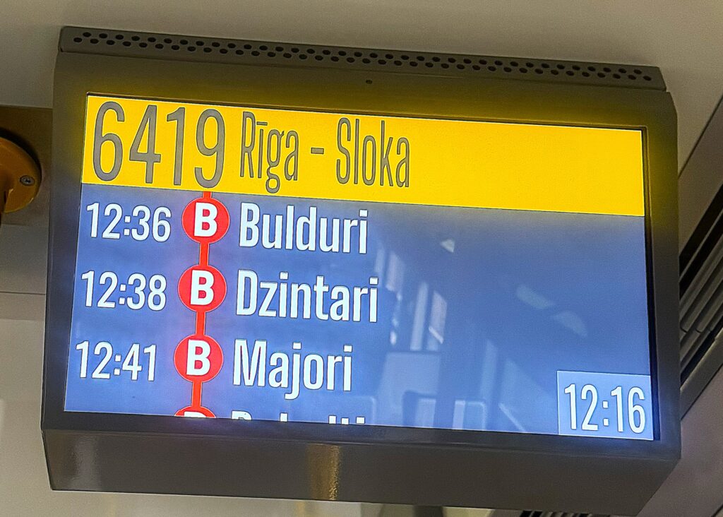Pociągi jeżdżą co pół godziny. można więc spokojnie przyjść w dowolnym momencie dnia i najwyżej chwilę poczekać. Bilety (4 euro w obie strony) można kupić w kasie biletowej lub w automacie, a po wejściu do pociągu każdy bilet należy skasować. Jurmała to kurort – ma stylowe białe i kolorowe, najczęściej drewniane domy, sanatoria, pensjonaty i sklepy, często zabytkowe, w stylu secesyjnym.