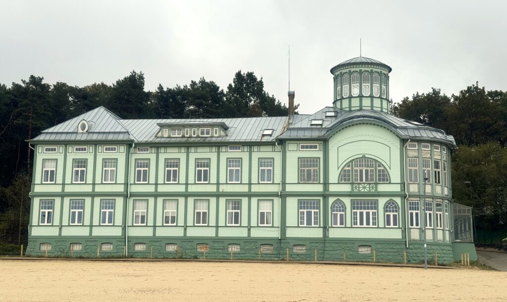 Miejscowość bardzo popularna w okresie niemieckim, a jeszcze bardziej w okresie radzieckim historii Łotwy (ponoć był tu Chruszczow i Breżniew!). Dzisiaj sporo tu rozmaitych atrakcji i knajpek, choć przyznam, że po sezonie nie było jakoś szczególnie gwarno, a niemała część restauracji była w środku tygodnia nieczynna. Jednak – co najważniejsze – Jurmała imponuje 25 kilometrami plaż z pięknym, drobnym, białym piaseczkiem oraz sosnowymi lasami. A Bałtyk, choć piękny, jest szarawy jak u nas. Wokół Jurmały założono Park Narodowy Kemeru, pełen jeziorek, bagien i chronionej roślinności..