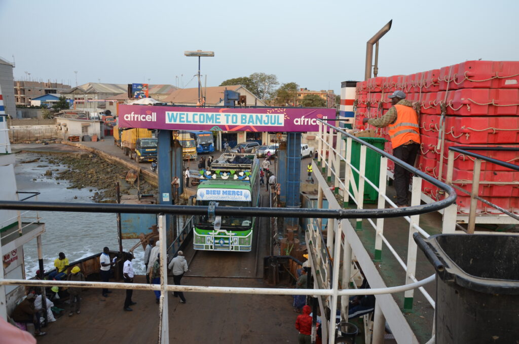To jest jak skok na główkę w głęboką egzotykę. Prom Bandżul – Barra daje nam taki podgląd prawdziwego życia w tym rejonie świata, jakiego trudno by nam było doświadczyć w innym miejscu tutaj. Wstaje świt, czekamy na prom w porcie Banjul. Prom kursuje od godziny 7 do 21, ale rozkład jazdy nie istnieje – odpływa, jak przypłynie i się załaduje. Oprócz nas całe mnóstwo ludzi: pieszo, zdezelowanymi samochodami, wypchanymi ciężarówkami. Często z ogromnymi bagażami – to kosze, noszone na głowie potężne pakunki, torby, czasem stadko kóz, u kobiet często na plecach dziecko przywiązane chustą.