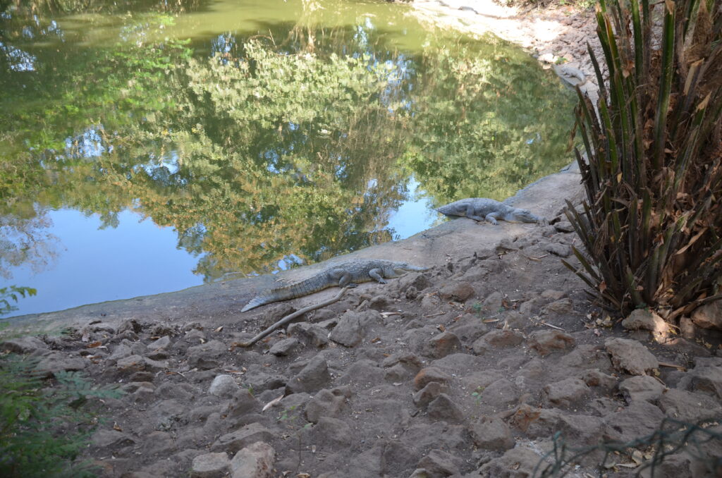 Krokodyle żyją tu na wolności, cały teren parku jest do ich dyspozycji. Chodzą więc sobie tu i tam, trzeba uważać wokół siebie. Jednak podobnie jak lwy w Fathala, są zdecydowanie powolne i najedzone. Z pozoru.