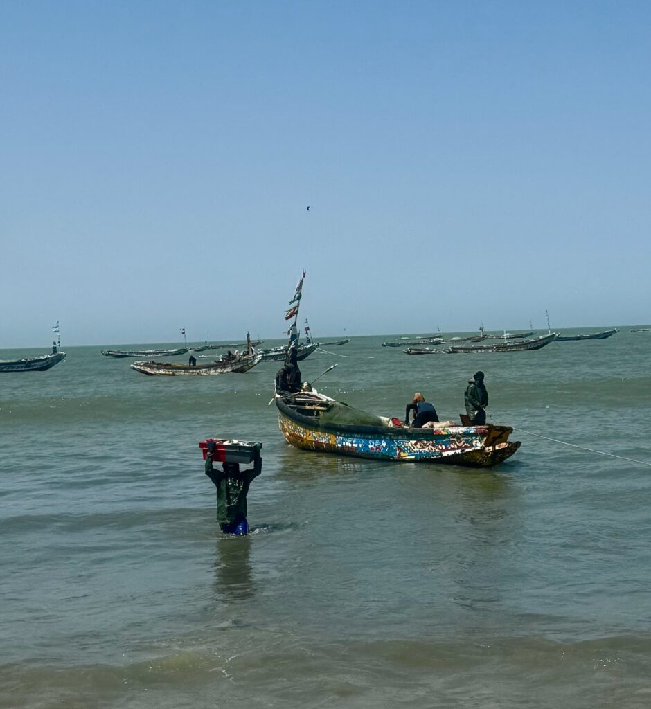 Kutry rybackie są długie, smukłe i kolorowe, a właśnie około południa wracają z morza. Przypływający z połowu rybacy, wyciągają na brzeg sieci, zwykle pełne ryb, na miejscu segregowanych i często także patroszonych przez kobiety, po czym sprzedawanych „na pniu”. Czasem poddawanych suszeniu. Wszystko przenoszone jest w pierwszej kolejności na głowach, a dopiero w drugiej za pomocą rąk. Rybacy wynoszą z łodzi potężne kosze i pojemniki, brodząc w wodzie po pachy, nim dotrą na ląd. W porcie nie ma utwardzonych dróg, za to jest mnóstwo much, ptactwa i niewyobrażalny smród ryb.