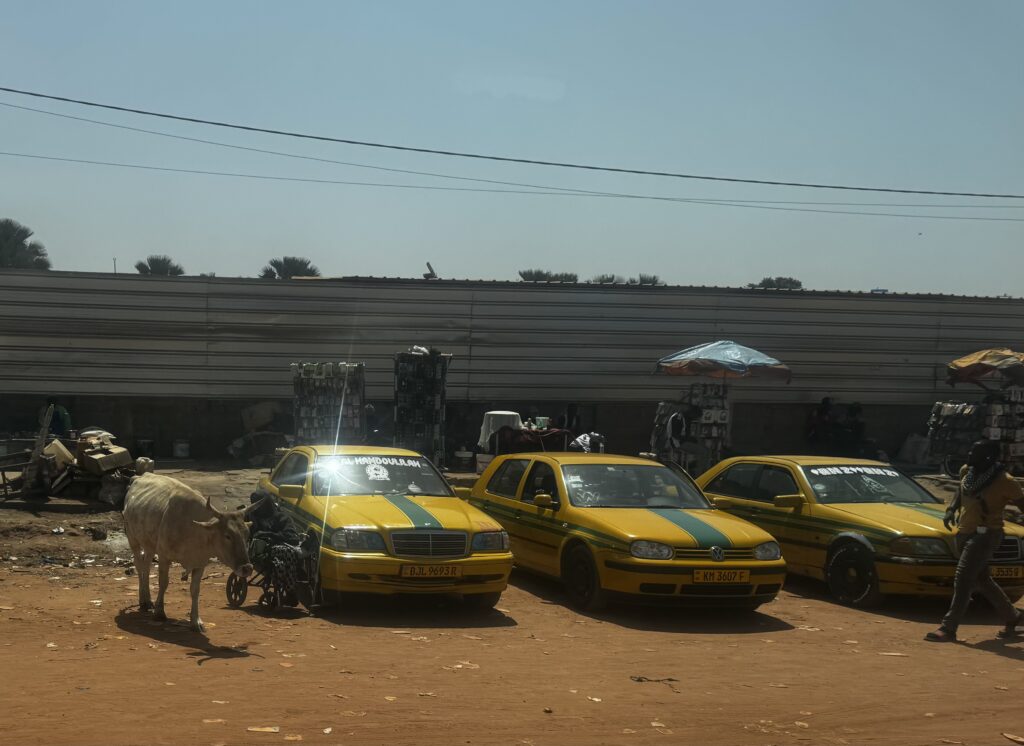 Lokalne taksówki gambijskie (żółte!) w Bandżul. Są tanie, ale jeździ się nimi „na dosiadanego” czyli w kilkoro pasażerów